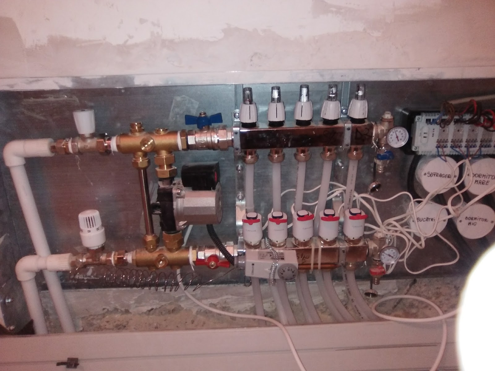 Instalaţii termice Execuţie instalaţii termice complete pentru: Construcţii noi Construcţii existente Clădiri de apartamente Clădiri de birouri Modificări şi renovări case Dintre aceste lucrări enumeram principalele categorii: Instalaţii de încălzire cu ventiloconvectoare Instalaţii de încălzire prin panouri radiante Instalaţii de încălzire în pardoseală Radiatoare Înlocuire coloane verticale de încălzire la blocuri Centrale termice murale combustibil gazos Centrale termice combustibil electric Centrale în condensaţie Cazane combustibil solid cu gazeificare.